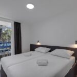 Zakwaterowanie w funkcjonalnych pokojach 2- i 3-osobowych, każdy z łazienką i balkonem – żeby złapać poranny chill albo wieczorne widoki na góry Biokovo. 🏞️