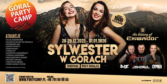 To nasz kolejny sylwester w górach, czyli najbardziej odjechana impreza dla wszystkich, którzy nie boją się powitać nowego roku w klimacie zabawy. W tym roku przygotowaliśmy dla Was specjalną wersję imprezy w Tatrach w Białym Dunajcu niedaleko Zakopanego. Góral Party Camp to ponad 700 osób z całej Polski w jednym miejscu połączone wspólną zabawą.